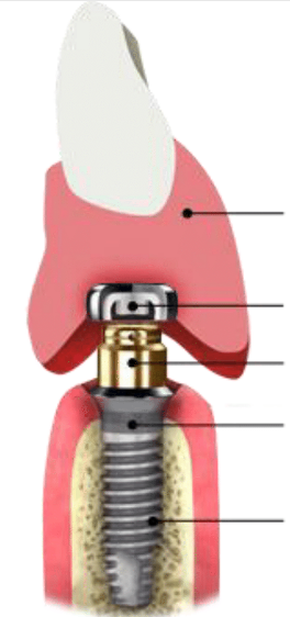 The denture cap (which is modified for implants) will securely hold the denture in place. The material used for the abutment is a titanium alloy implant, which is the same material found in joint replacement implants; surface encourages integration with the bone as titanium is a bio-compatible metal.
