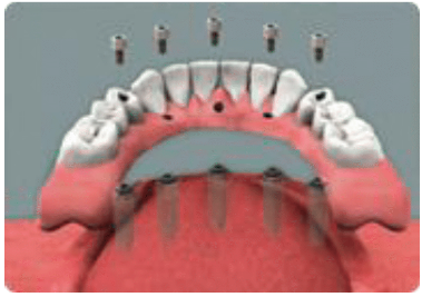 This type of implant is suitable if all your upper and lower teeth have been extracted. A custom-made denture is secured using dental implants. The number of titanium implants required will differ in each patient.